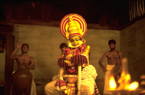 Foto 1: Duryōdhana – Kalāmaṇḍalam Rāma Cākyār, Kiḷḷimaṅgalam: Paḷuṅkil Śivanārāyaṇakṣētram, 29.9.96 (Foto: Unni / Moser, I.96.15-09)